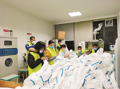 走廊裏疊衣服的大姐說:“網上的視(shì)頻裏,醫生戴著口罩(zhào),穿(chuān)著防護服在病房走進走出,隻能看到一雙眼睛,看到那眼神我就想哭。”說著,她低頭仔細把衣服折好,“前線那麽辛苦,我們就多做些力所能及的。”